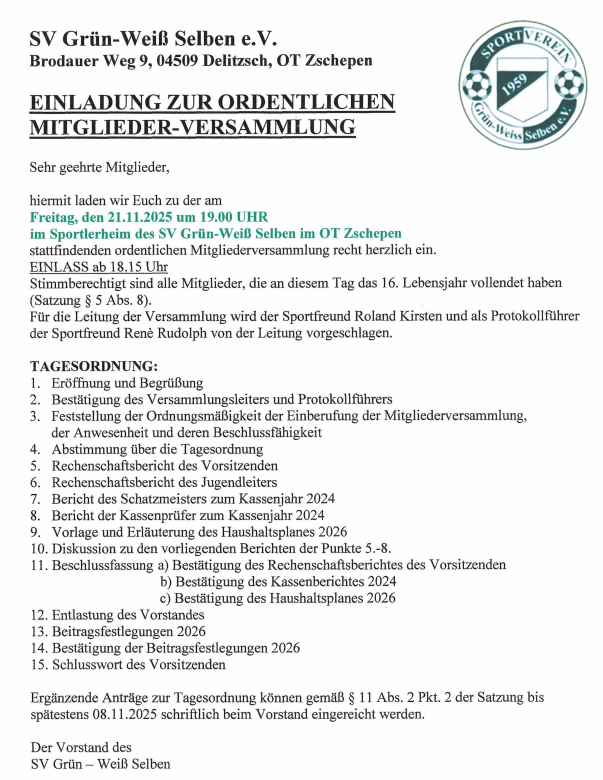 Für jeden, der in seiner Freizeit mehr Bewegung möchte, ist der SV Grün-Weiß Selben e.V. der richtige Verein. Denn Fußball steht bei uns im Mittelpunkt. Wir suchen ständig ambitionierte Spieler